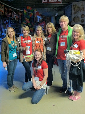 Corralled for a brief moment: Emily, Lorraine, Kathie, Irene, travis, Nancy and Carly!