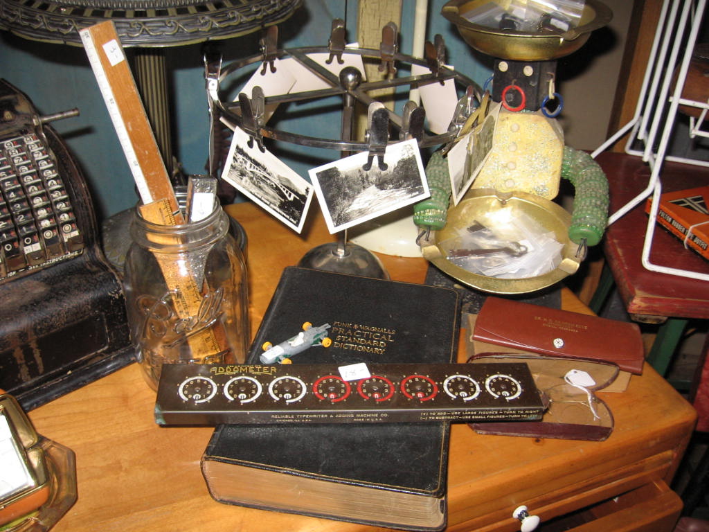 a display case made of an old ship’s window and anchor chains for legs. It finally sold for so much less than I paid for it!