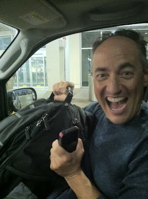Here he is tonight, being whisked away from Door No. 1 at baggage claim at the Lindbergh Terminal in Minneapolis!
