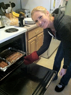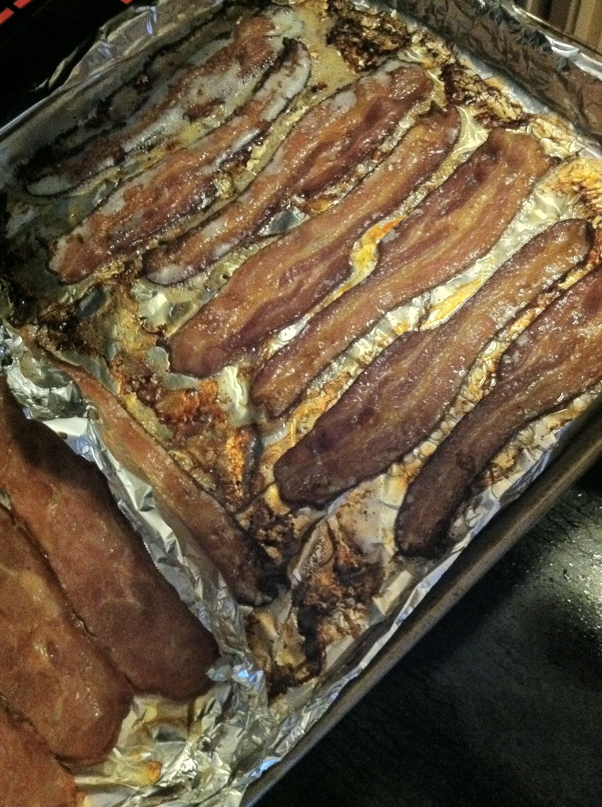 She baked the cherrywood smoked bacon for a minimum of grease! That’s Jane’s turkey bacon on the left!